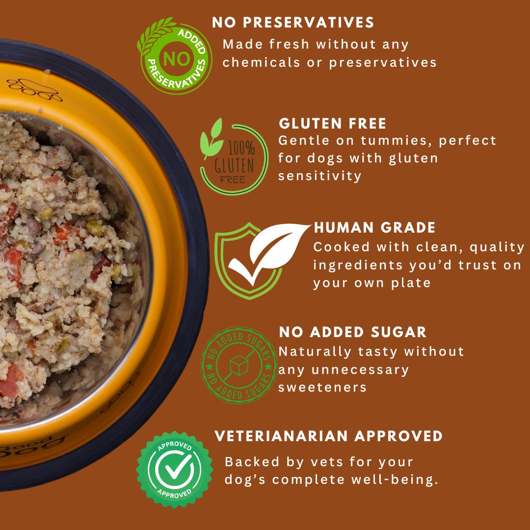 This simple, wholesome dish is a great option for dogs. It combines lean protein, healthy carbs, and a dose of natural vitamins—perfect for sensitive stomachs or as a homemade treat meal.